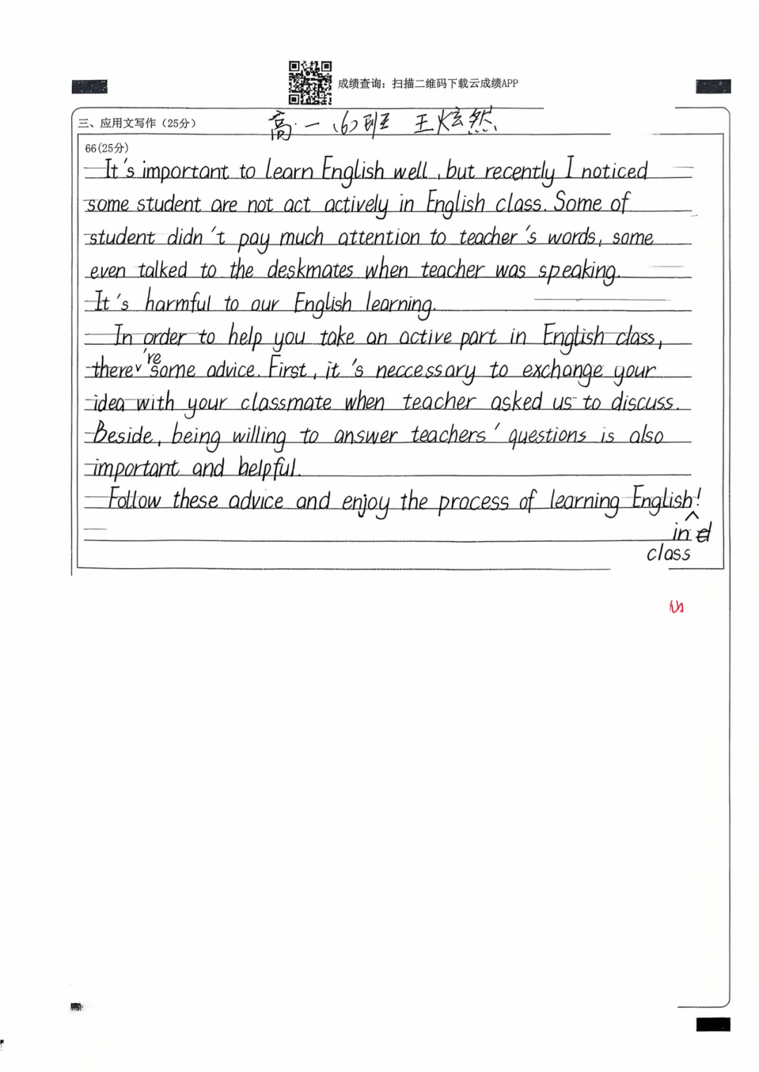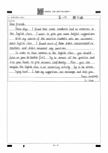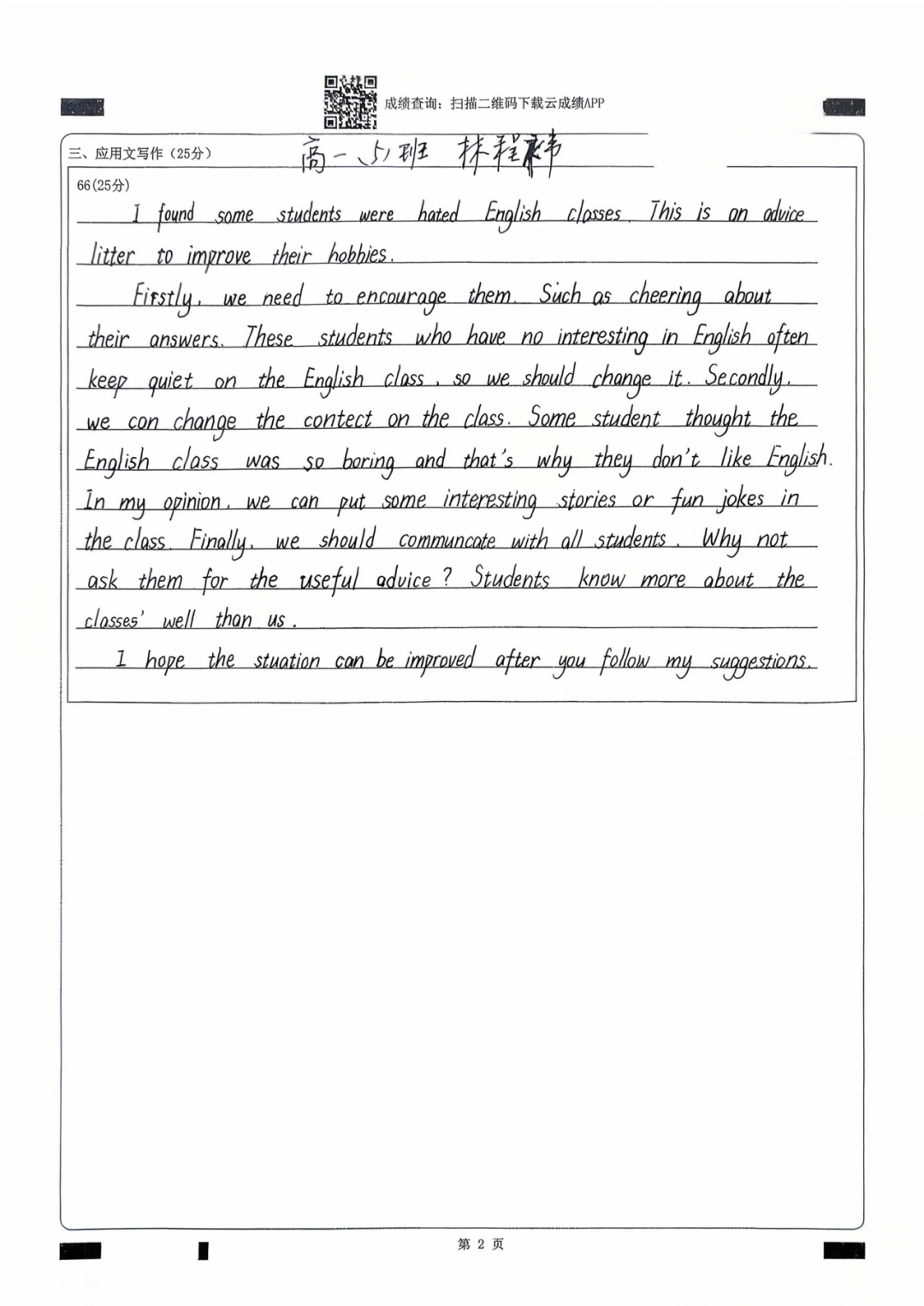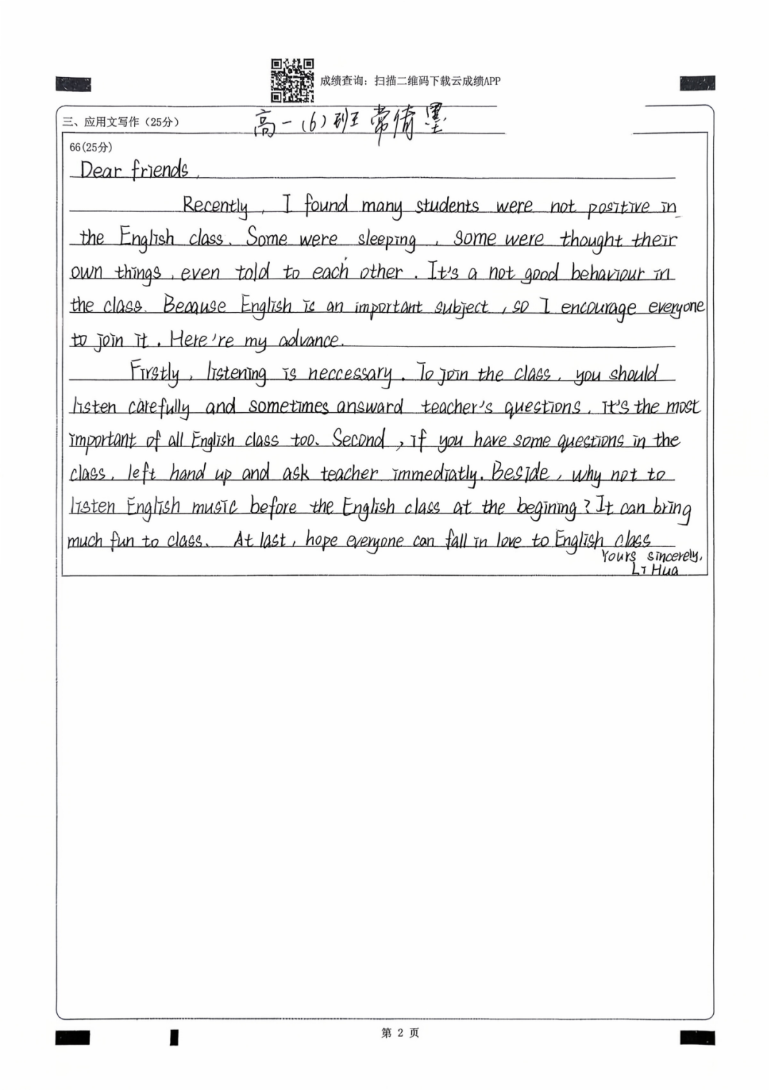 经过英语组老师们从字母书写规范、单词间距、篇章布局、卷面整洁度等多个维度的严格评审,一大批优秀作品脱颖而出。这些作品是同学们在有限的时间里、紧张的情绪中所展示的书写状态,也许做不到完美无瑕,却真正赢得了阅卷老师们的芳心。让我们期待在下一次的考场,能诞生更多更优秀的作品。