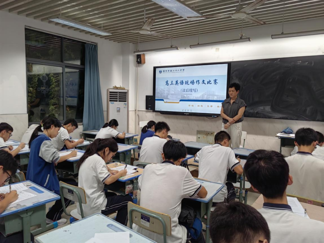 当高一高二的学弟学妹们在声音与色彩中徜徉时,高三的学子们则迎来了一场更为严峻且充满温情的挑战——英语现场作文比赛。本次比赛直指新高考题型“读后续写”,要求学生在阅读一篇关于“人与人之间的善意”的叙事性短文后,依据给定段落开头语,在规定时间内完成一篇情节连贯、情感真挚、语言优美的续写文章。