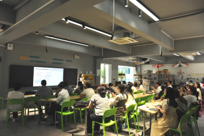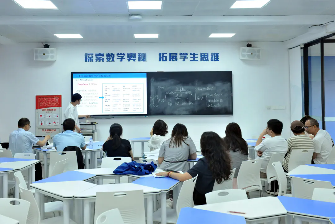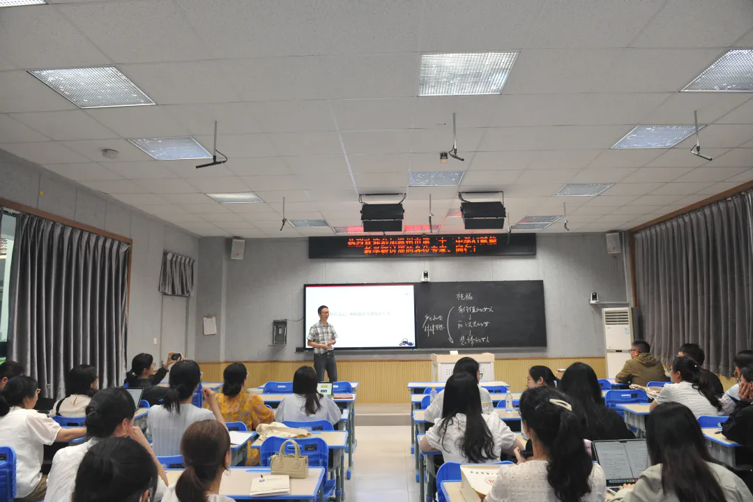 胡老师开展 “数智融合:AI驱动的高中数学教学创新” 主题微讲座,她结合教育部推进教育数字化政策,围绕精准提问、协同共创、系统融合三大模块,通过案例演示AI在学情分析、教学设计、课堂互动等教学全流程的创新应用,为在场教师提供数字化教学新思路。