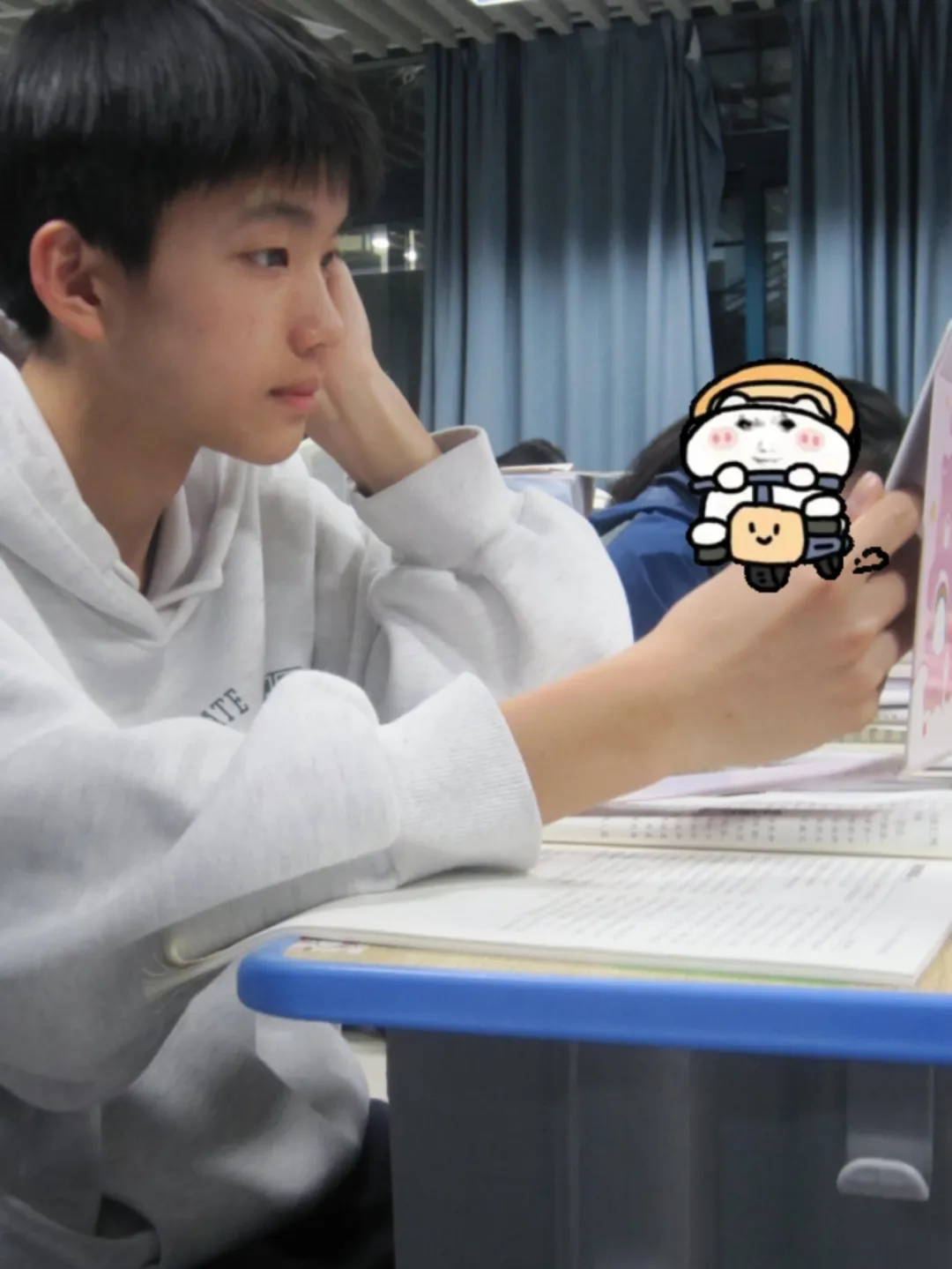 在喧嚣的课间或是热闹的课堂,你是静默的一隅,像是把言语换成了沉默的专注力。
