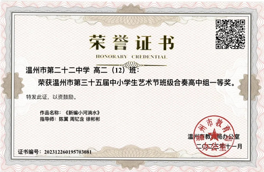 浙江省中小学学科德育典型案例、浙江省精品数字资源开发优秀资源,温州市教育教学论文一等奖、历史优质课评比一等奖等。