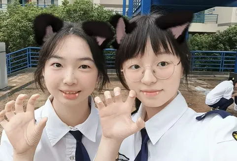 可爱灵动的你,上课总是乖乖的,但却总是会被我们推上讲台回答问题,下课也总能看见你和梓伊打打闹闹的身影~