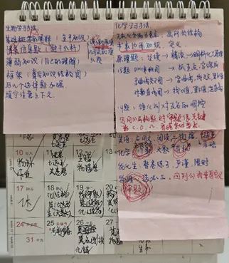 在高中的时候,我的班主任给每个同学买了一本日历,做好每天的计划,我会在日历当天空白的部分记下一天要干的事情:写作业、整理错题……同时我也会在上面贴上一些便利贴来告诉自己最近一段时间最需要注意的方面,比如上个月一模刚刚结束,然后犯了一些很低级的错误像是数学填空题边界条件忘记考虑,英语阅读题题目审错之类的,我就记在这个便利贴上,就能养成一种习惯,日历就放在书桌上,时刻提醒自己,这样自然而然就成为了一种习惯,很难再犯同样的错误了。